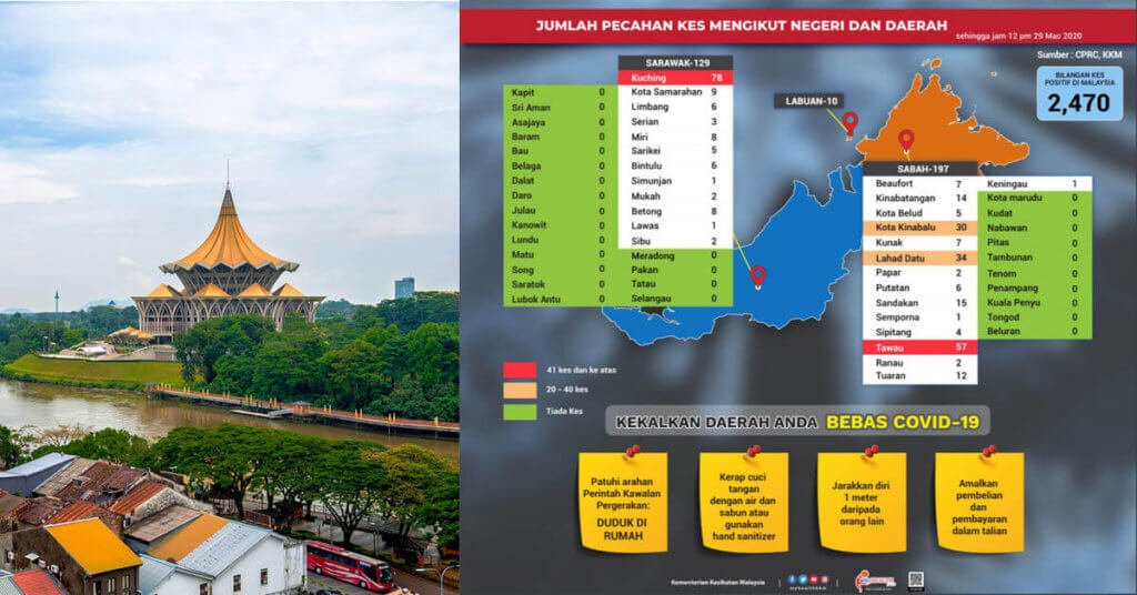 Ini Taburan Terkini Kes COVID19 Di Sabah Dan Sarawak, Kuching Catat Kes Tertinggi